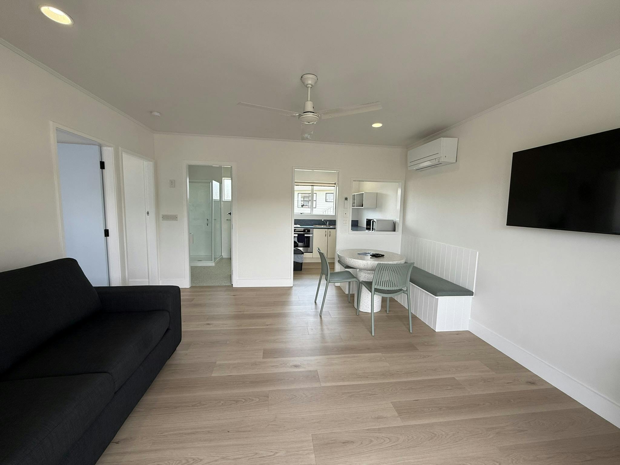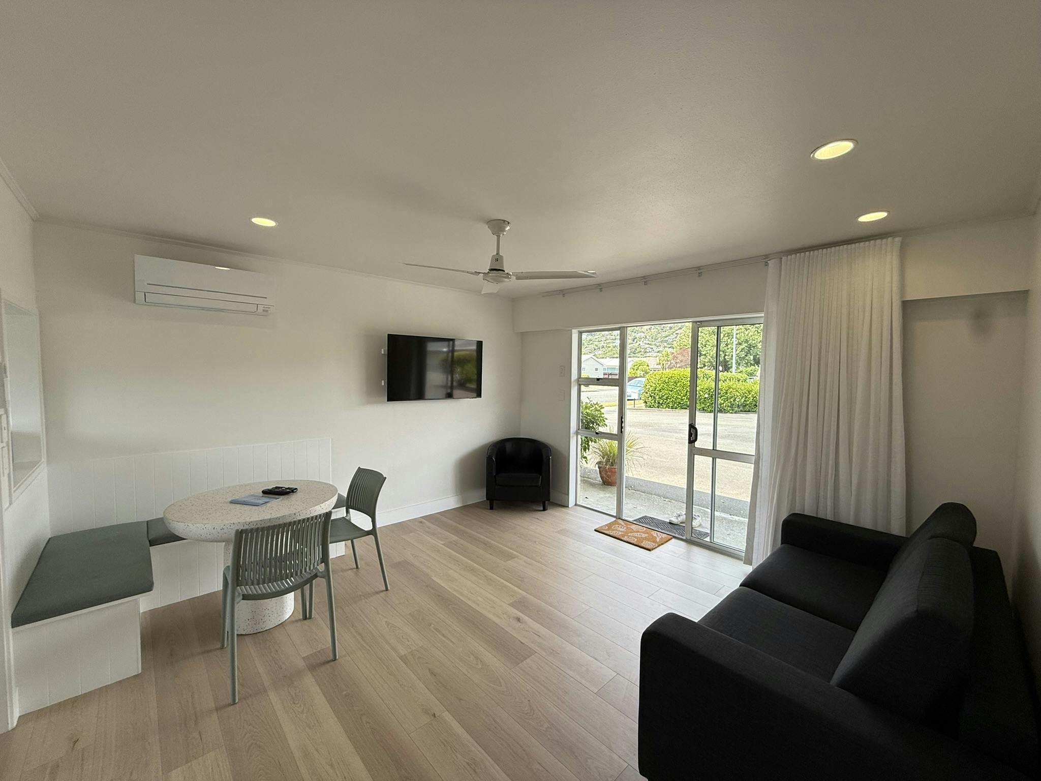 Step into this recently renovated two-bedroom unit, styled with a fresh, modern beachy feel and designed for comfort in every season. Light, airy interiors create a relaxing space to unwind after a day exploring Nelson’s coastline. Enjoy year-round comfort with a new heat pump, providing cool air conditioning in summer and cozy heating in winter. The spacious living area is perfect for families and friends, featuring a 50" Smart TV for streaming your favourite shows and movies. Both bedrooms are well appointed for a restful night’s sleep, while the open, contemporary layout makes it easy to relax together. Located just moments from the beach, this unit is ideal for morning walks, sunset strolls, and easy access to the waterfront. Perfect for families, friends, or longer stays, this stylish unit combines modern comfort with a laid-back coastal vibe.